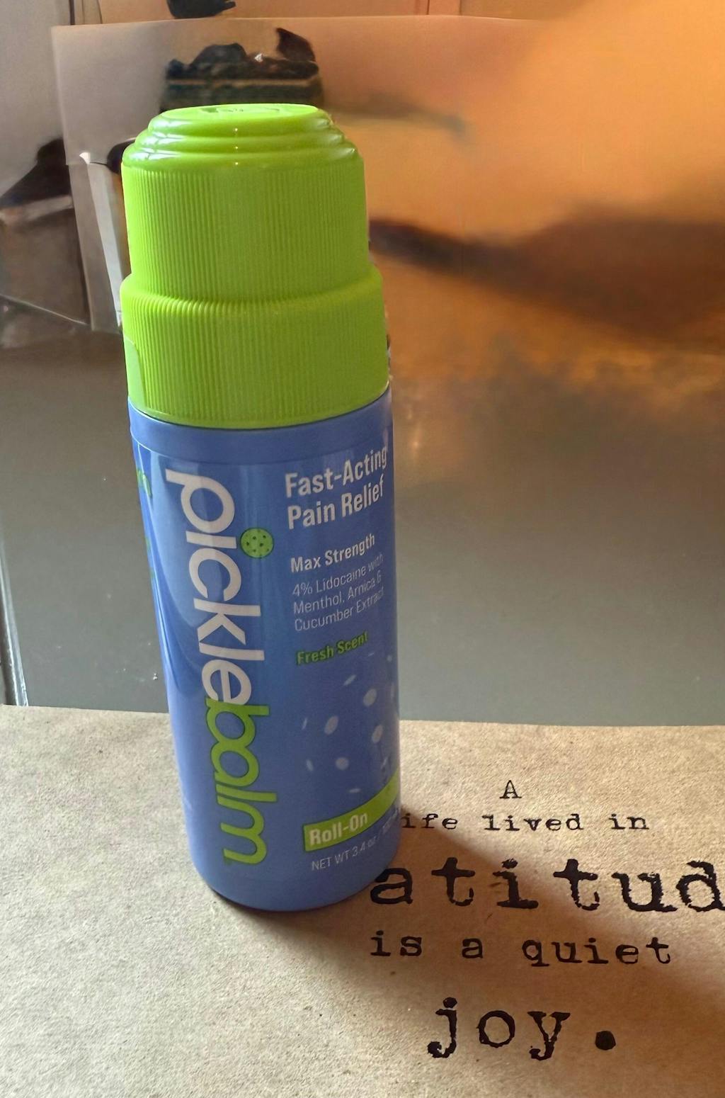 I walked up to this booth at the PPA Masters and took a sample. That night I put the sample on my knee after playing all day. It really worked! I had no pain when I went to bed and I woke up the next day ready to play. I immediately went to the booth and bought the roll-on and the cream and told all my friends. Thank you Picklebalm!